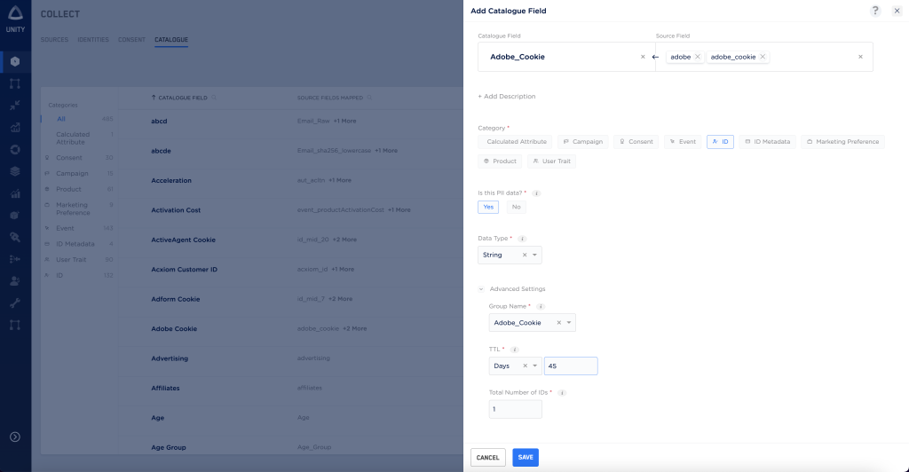 Catalogue in Zeotap CDP is a central feature and introduces standardisation of data across the system. With its Do-it-Yourself (DIY) capabilities, our Catalogue offered full control and functionality to efficiently prepare, define and onboard their data sources. Their data silos from web, mobile and cable sources were unified to identify the existing unique customer profiles that could be targeted. The ingested data was standardised as per their business need. Additional categories were created like user traits, event data, consent, marketing preferences and more against the user profiles. Furthermore, Calculated Attributes were created based on modelled information such as high-valued customers and low-valued customers. A custom schema was created on the fly!