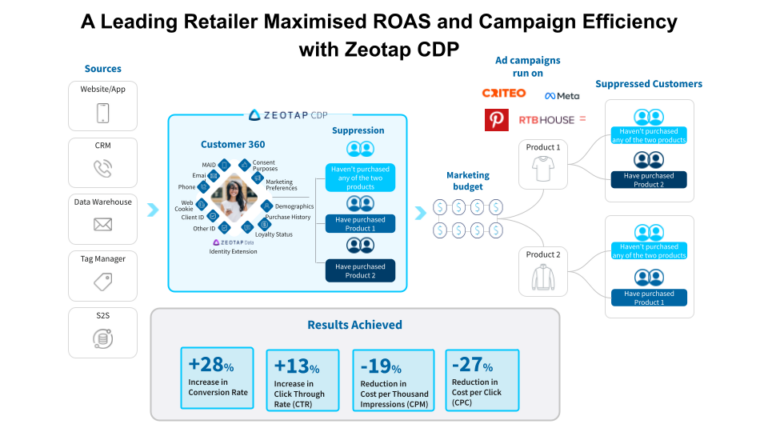 In today’s competitive retail landscape, brands are under immense pressure to drive efficient, targeted campaigns that generate high returns and reach the right audiences. A leading retailer recently showcased how Zeotap CDP’s data-driven approach empowered them to achieve impressive results across multiple marketing goals. Let’s dive into these use cases and explore how unified customer profiles and intelligent audience strategies drive impactful results.